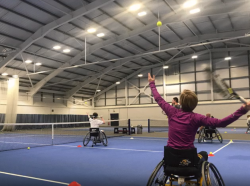 Moreover, the Centre will supply sports wheelchairs for added mobility around the court, as well as expert tuition. These specialist chairs have a wide wheelbase for easier, safe mobility (fast turns are a great aid to better play) and safety strapping to help those with low or no abdominal strength. But the main attributes are not strength, they are timing and technique, which you will acquire with the expert tuition. Most of all it will be FUN!